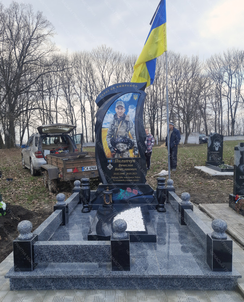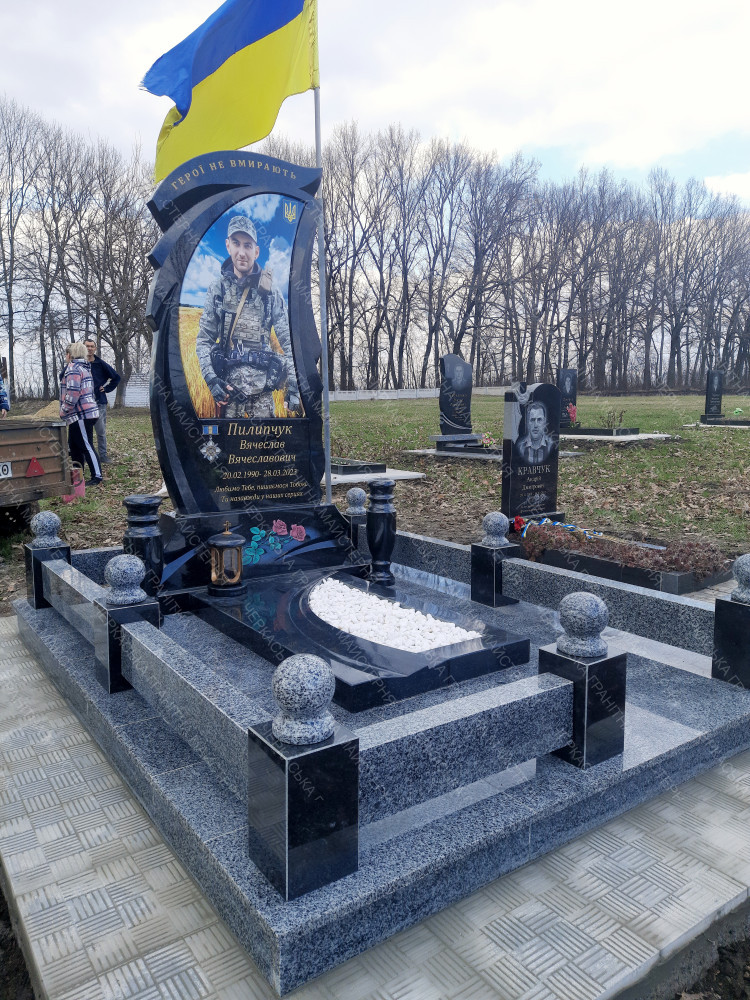 Ціна: 162300 грн. в представленій комплектації, двома вазами, лампадкою та художнім оформленням лицьової сторони з керамогранітною табличкою. Бетон, плитка, огорожа у вартість не входить